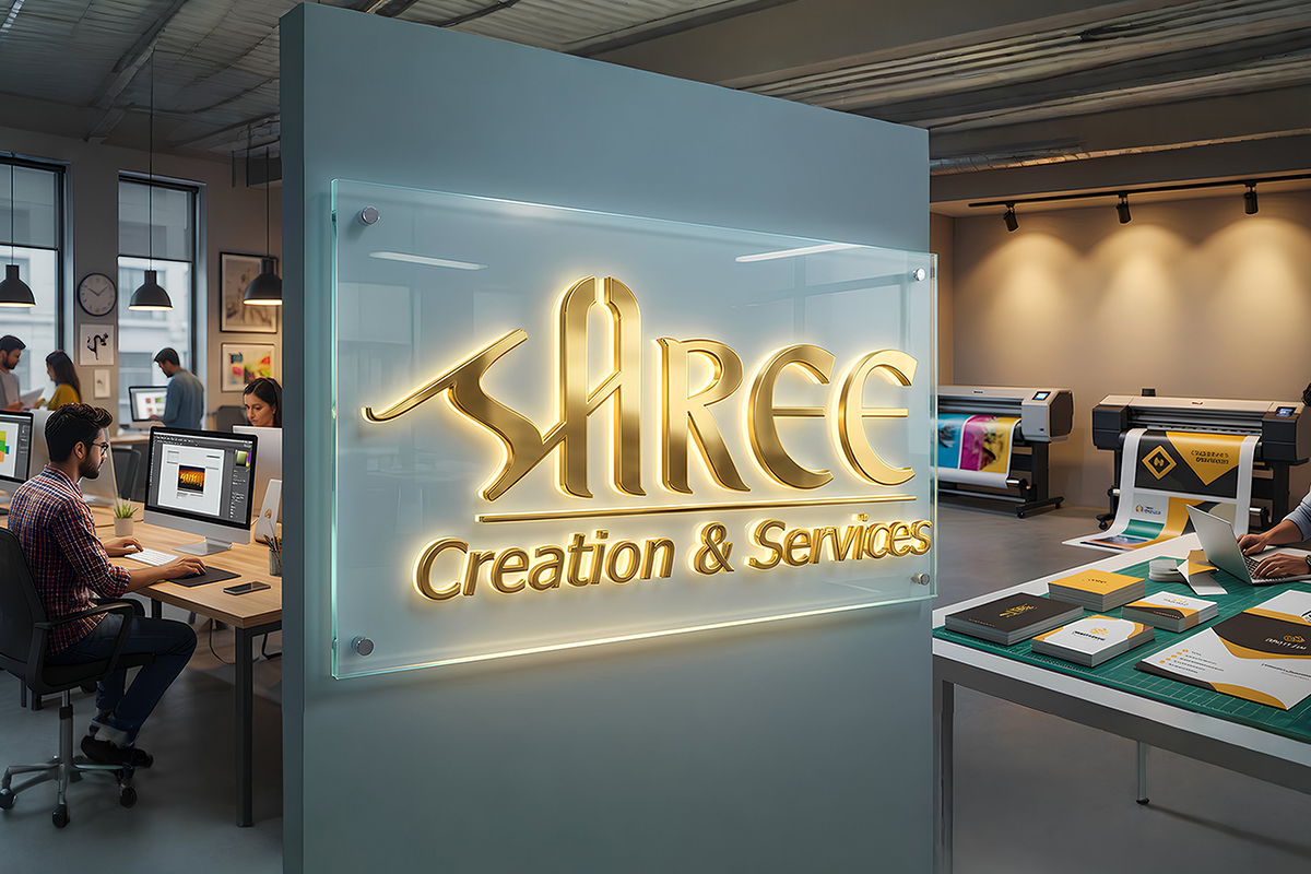 Shree Creation & Services is a professional branding and printing company based at Matrix Business Centre, Kalda Corner, Ch. Sambhaji Nagar. We provide complete end-to-end solutions for commercial branding, printing and signages right from concept development and creative design to high-quality production and on-site installation. What began as a small printing setup has now grown into a one-stop destination for flex and eco-solvent printing, glow sign boards, LED signages, ACP/Acrylic/Metal channel letters, road safety signages, customized wallpapers, roll-ups, standees and a wide range of premium display and branding solutions.